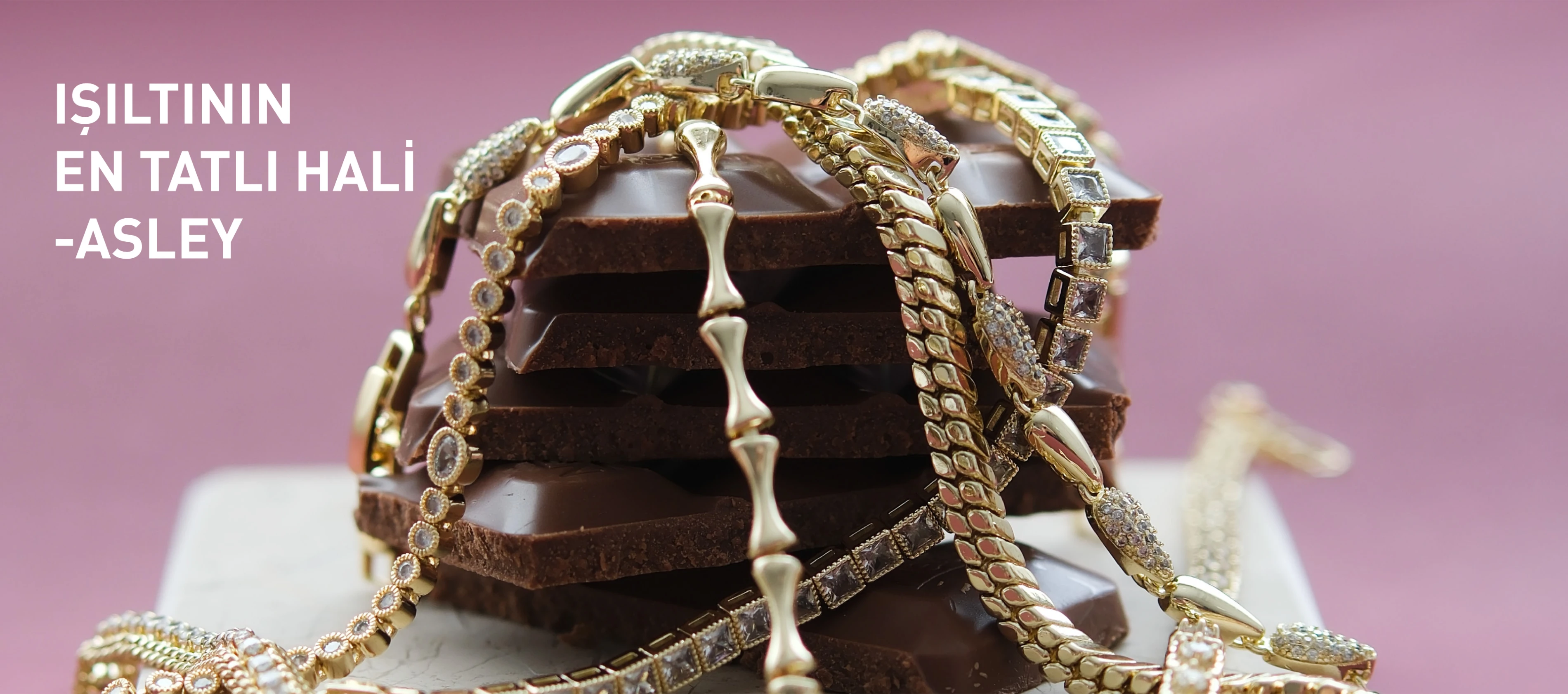 Araları Taşlı Oval Zincir Tasarım Uzun Gold Kolye